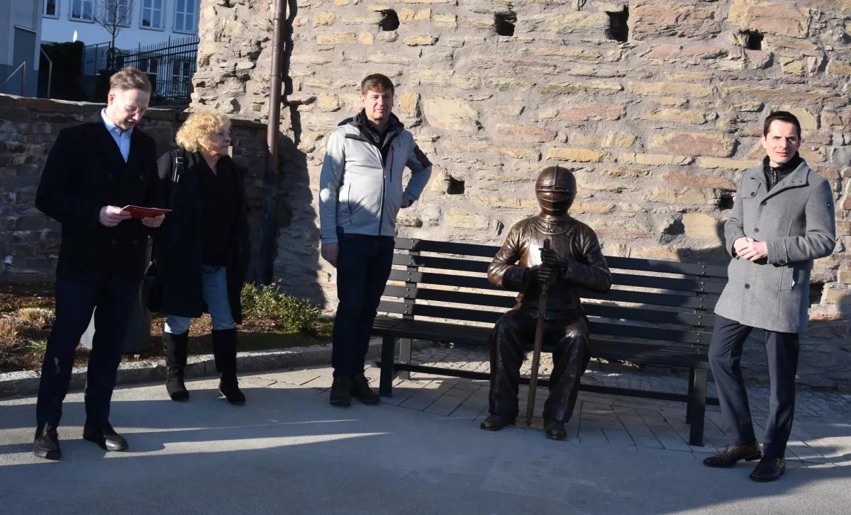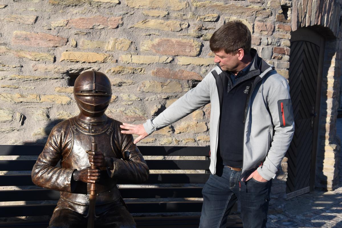 Der Iserkopp, der auf einer Bank am Bieketurm sitzt, steht für die Stadtgeschichte. Bürgermeister Christian Pospischil erklärte, dass der Iserkopp zurückgeht auf den 30-jährigen Krieg, in dem die Schweden Attendorn belagerten. Als Trophäe des Sieges der Hansestadt wurde die Rüstung behalten. Metallbaumeister Thomas Schütte, der eine Kunstschmiede in Oberkirchen betreibt, hat bereits Erfahrungen bei der Erstellung von Skulpturen für Städte gesammelt.