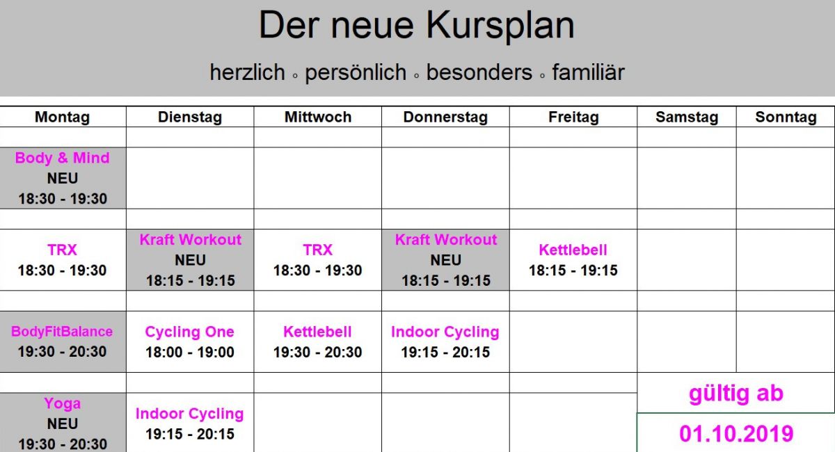Der neue Kursplan.