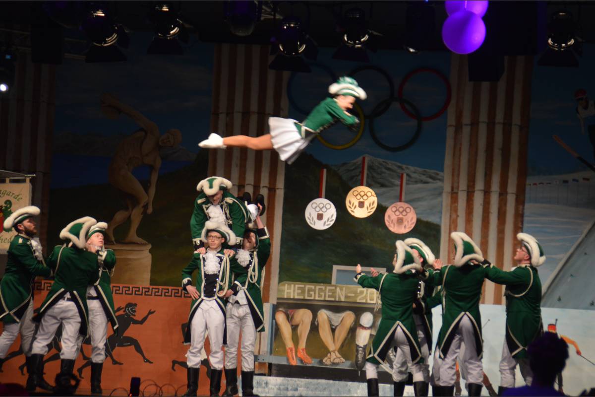 Die Mariechen wirbelten nur so durch die Lüfte und sorgten im Publikum für so manchen Atemaussetzer. Auch die Mädels begeisterten auf den Brettern, die Welt bedeuten. Richtig olympisch fing es schon mit dem Showballett Heggen an. Das Feuer war entzündet und wurde über den ganzen Nachmittag bis in die Abendstunden (oder noch länger) zu einem karnevalistischen Feuerwerk. „Fire of Dance“ aus Heggen, die Prinzengarde Olpe, die Funkengarde Heggen und die Showgarde Frenkhausen zogen alle Register ihres Könnens.
