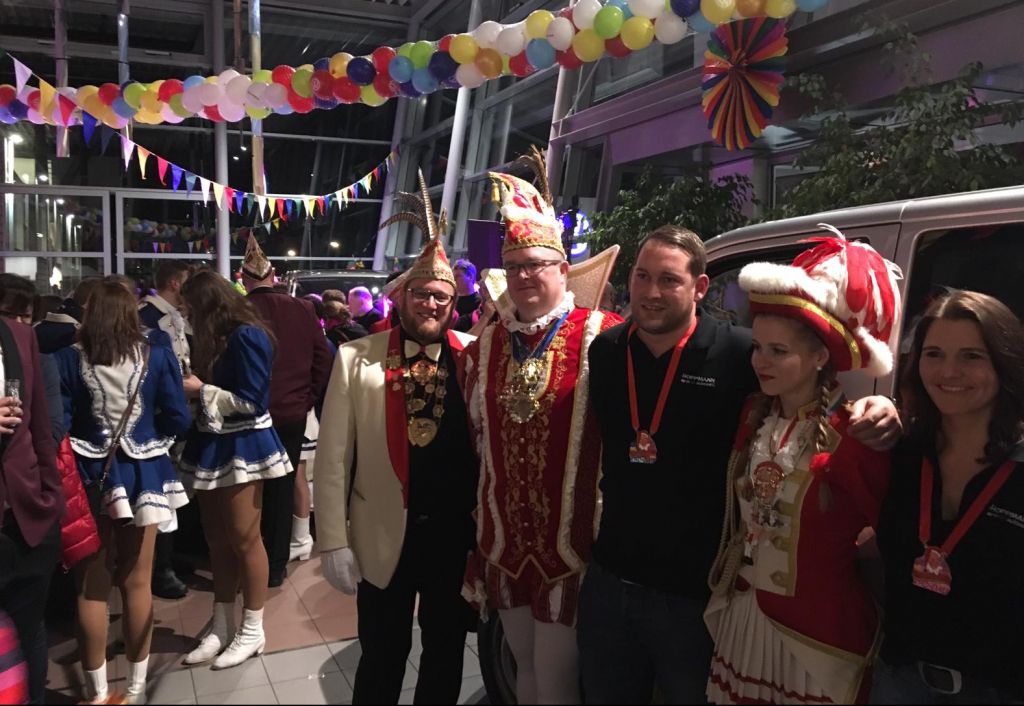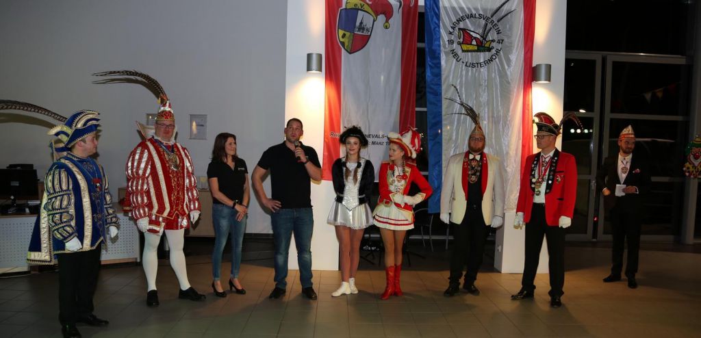Am Freitag, 8. Februar, wurde das Autohaus Hoppmann zur Karnevalsarena. Zunächst begrüßten die beiden Präsidenten, Mark Leine aus Rhode und Florian Strautz aus Neu-Listernohl, die Gäste und die Mitarbeiter des Autohauses.