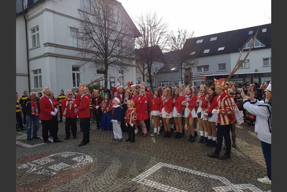 Unter lautem Gejohle und pünktlich um 11.11 Uhr erschienen die Jecken des Karnevalsvereins Schönau-Altenwenden am Donnerstag, 28. Februar, in Begleitung zahlreicher Tänzer und Tänzerinnen der blauen und roten Funken auf dem Rathausplatz, um mit „Von Schönau bis Bockenbach!“ die Belagerung zu beginnen. Bis sich Bürgermeister Bernd Clemens schließlich gespielt muffelig am Fenster zeigte: „In Schönau bis Bockenbach mag man feiern, aber wir haben hier zu arbeiten.“ Schließlich gab er dann doch den Schlüssel heraus und erlaubte den Karnevalisten, ins Rathaus einzuziehen. Dieses war von den Verwaltungsmitarbeiterinnen liebevoll geschmückt und närrisch dekoriert worden.