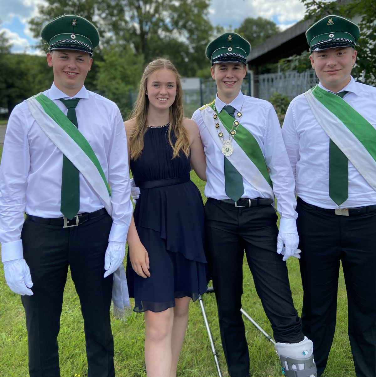Leon Häner und Hedda Henneke sind die Nachwuchsregenten der St.-Antonius-Schützenbruderschaft Gerlingen. Gips und Krücken hinderten den Jungschützenkönig nicht am Fototermin.