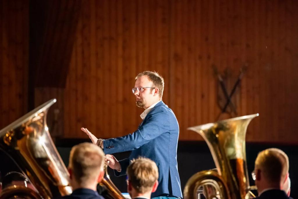 Bevor mit dem Stück „Beyond the Horizon“ von Rossano Galante ein weiteres Konzert-Highlight präsentiert wurde, übergab Dirigent Micha Klappert noch einmal den Dirigentenstab an seinen Vorgänger Frederik Linn. Bereits Anfang 2020 hatte Frederik Linn angekündigt im Herbst 2021 nach fast acht Jahren sein Amt übergeben zu wollen.