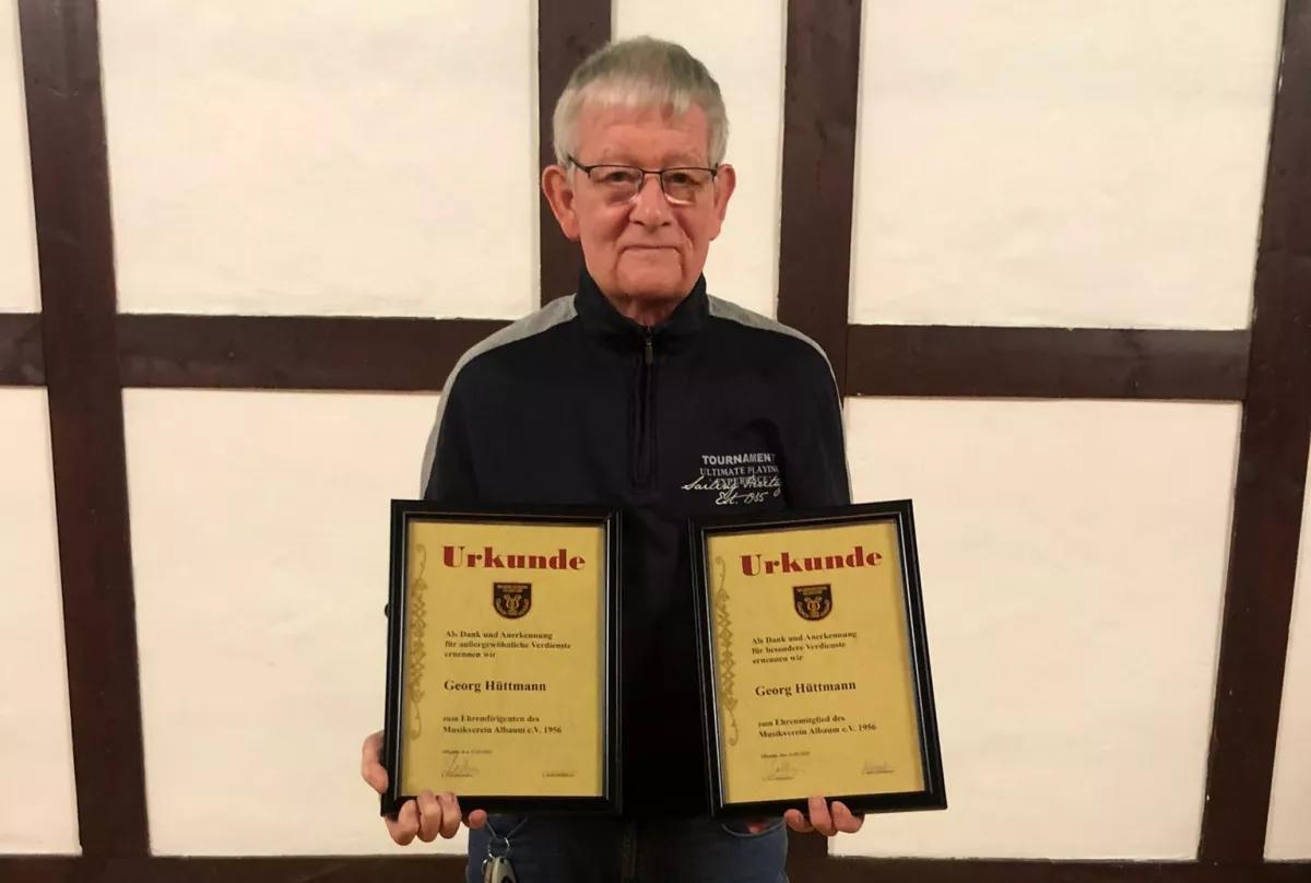 Zu Ehrenmitgliedern des Musikvereins wurden Georg Hüttmann, Stefan Kordes und Gerd Schweinsberg gewählt. Georg Hüttmann, der seit 1965 im Musikverein aktiv ist, wurde zudem zum Ehrendirigenten ernannt. Den Posten des Dirigenten hatte er von 1982 bis 2002 ausgeführt.