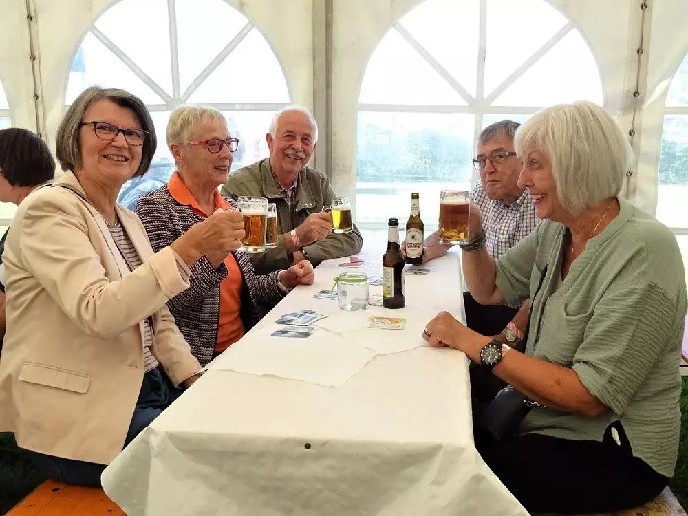 Am Samstagnachmittag zeigte ein Rundgang über den Festplatz, was mit vereinten Kräften möglich ist: Kleine Baumeister türmten riesige „Holzklötze“ auf, beim Stand der Feuerwehr übten Kinder einen Löschangriff und Torwand, Tischtennisplatte und Dartscheibe luden zum sportlichen Wettkampf ein. Kreativ ging es beim Bemalen von Stofftaschen zu und die Jüngsten vergnügten sich mit Spielgeräten und Sandkasten. Aber auch Eltern und Großeltern kamen auf ihre Kosten: Bei leckeren Waffeln und Würstchen vom Grill, schmissiger Blasmusik und einem „kühlen Blonden“ genossen Jung und Alt ein Stück Normalität nach der Feier-Abstinenz der vergangenen Monate. Ein Fest von allen Vereinen für alle Generationen sollte es sein.