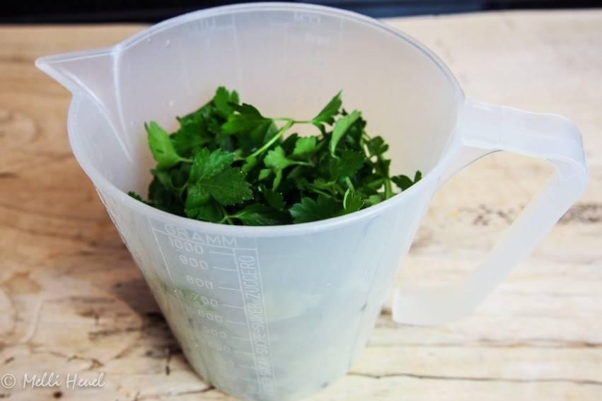 - Petersilie waschen und trocknen.