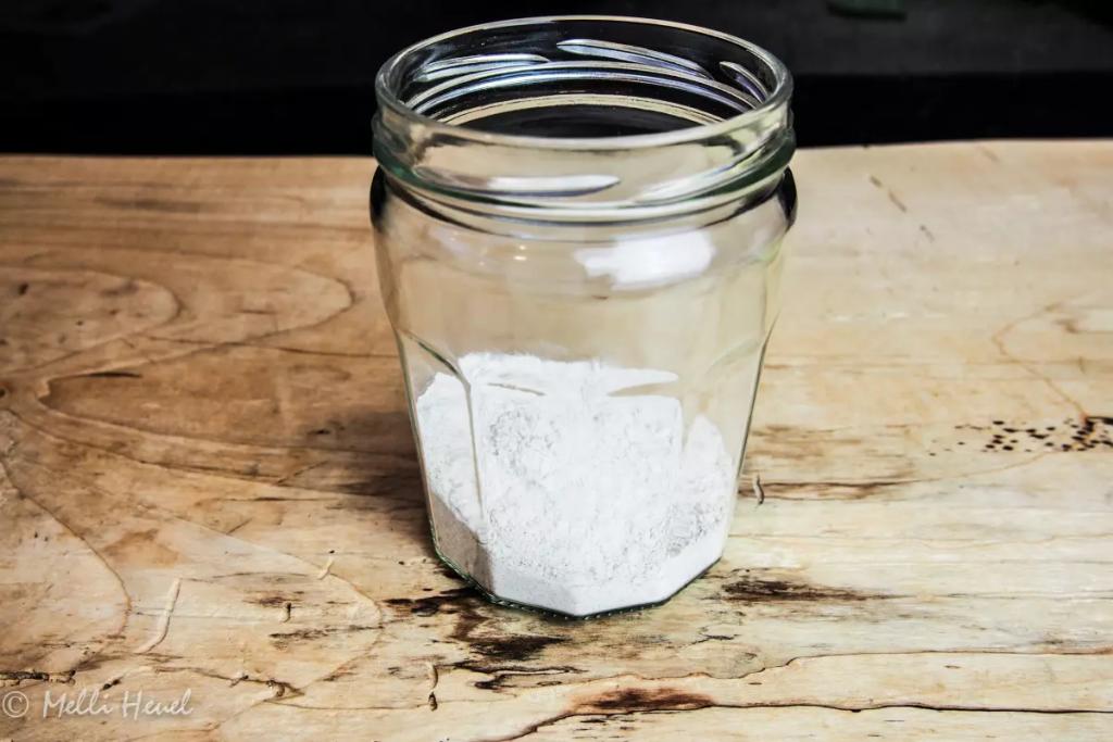 Ihr benötigt ein mittelgroßes Bügelverschlussglas oder ein Schraubverschlussglas, Roggenvollkornmehl/oder alternativ Type 1150 (beides bestenfalls in Bioqualität) und Leitungswasser.