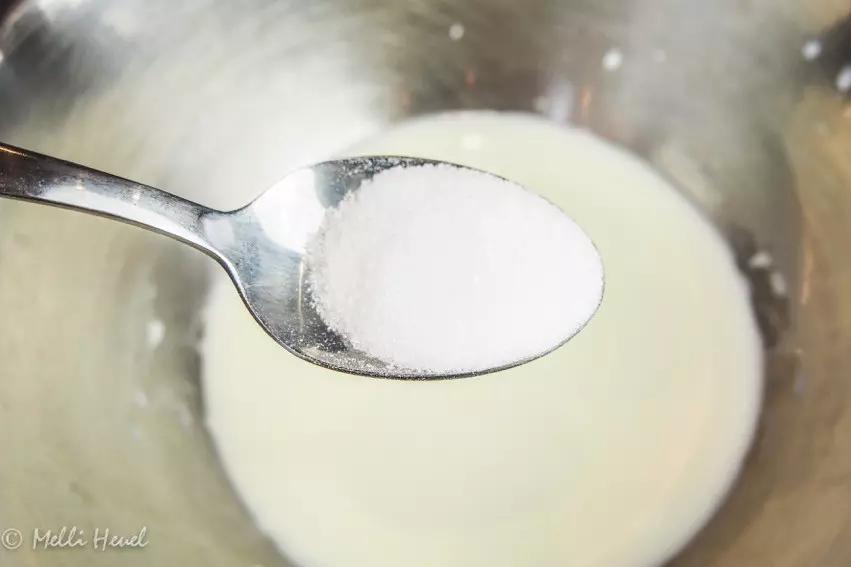 - Erwärmt dafür die Milch lauwarm und verrührt sie mit dem Zucker, der Trockenhefe, dem Pflanzenöl und dem Eiklar.