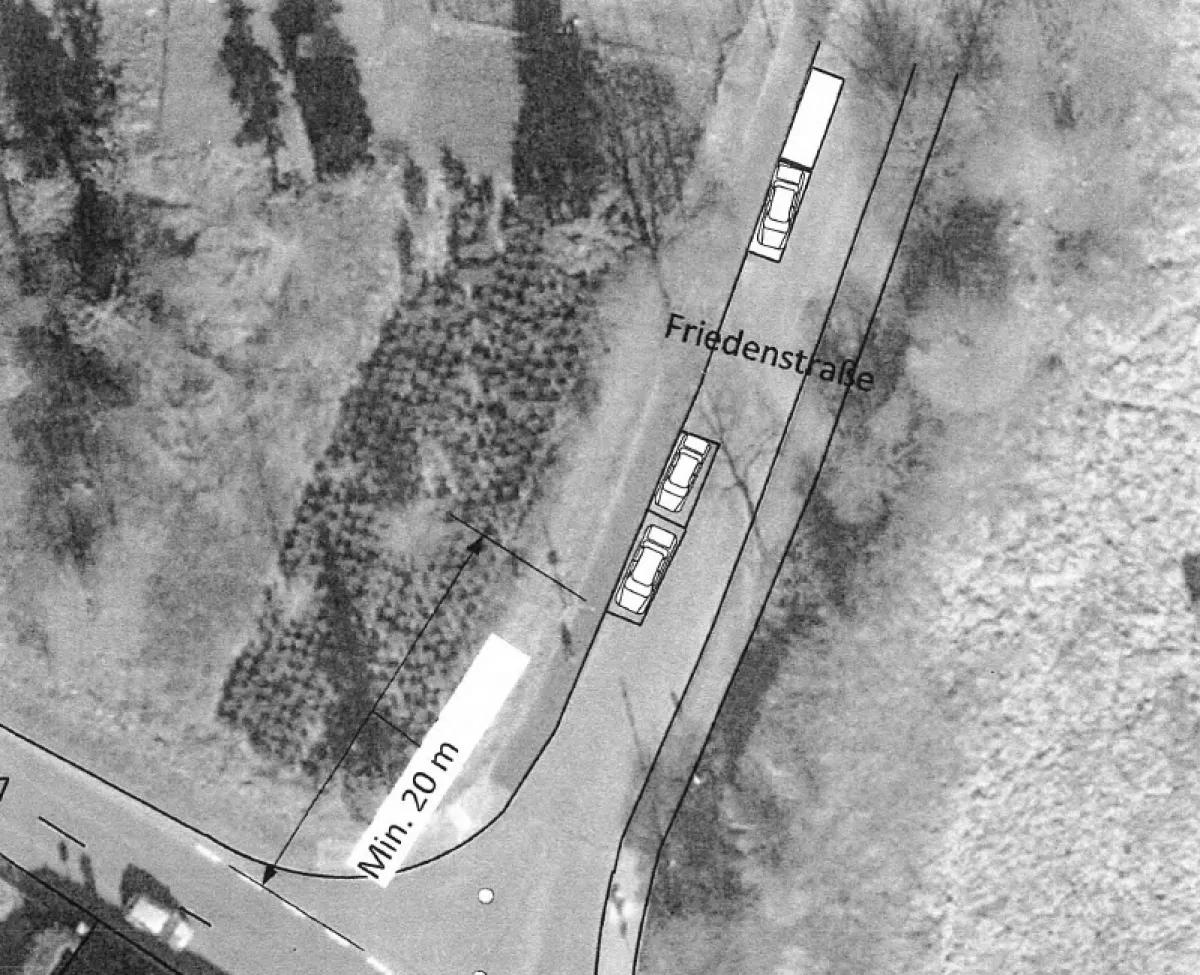Wie die Gefahrenquelle gelöst werden soll: Die Parkmarkierungen im Bereich der Einmündung Windhauser Straße sollten mindestens 20, besser 25 Meter nach der Schnittstelle beginnen. Es sollten jeweils 2 Flächen markiert werden. Auf der Strecke bis zum Haus Mutter Anna sind dann realistisch zehn eingezeichnete Flächen von je 5 Metern Länge mit jeweils einem Freiraum von 15 Metern möglich.