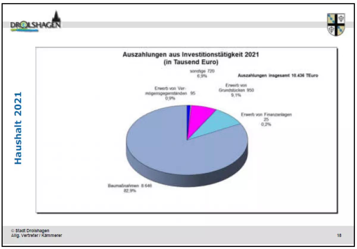 Lange wies darauf hin, dass Kreditermächtigungen für die Jahre 2018 bis 2020 nicht beansprucht worden seien. Vielmehr seien entgegen ursprünglicher Planung 2,8 Millionen Euro an Investitionskrediten abgebaut worden. Aber: „Durch die Neuveranschlagung bisher nicht zur Ausführung gekommener Investitionsmaßnahmen entsteht nunmehr für das Jahr 2021 ein deutlich höherer Kreditbedarf als in den Vorjahren.“, kündigte Lange an.