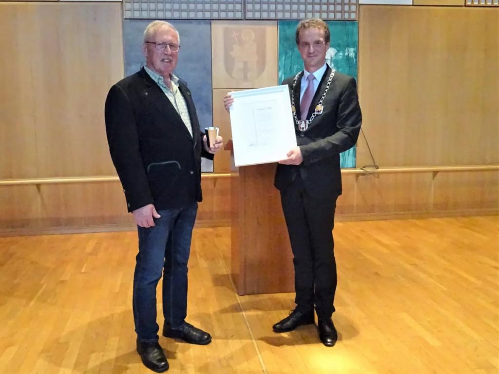 Abschließend bat Bernd Clemens noch Ralf Kleinow (von 2014 bis 2020 Ortsvorsteher in Dörnscheid) nach vorne. Für ihn und Mirko Weber (Ratsmitglied von 2016 bis 2020), der berufsbedingt nicht anwesend war, habe es laut Ehrenordnung zwar nicht zum Silbernen Ehrenbecher gereicht, aber als Dank für ihren Einsatz und die gute Zusammenarbeit erhielten sie eine Wenden-Armbanduhr.