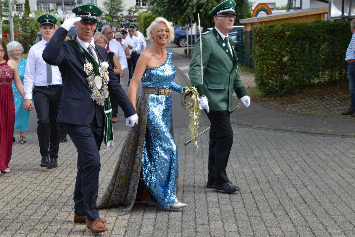Dabei zeigten sich das noch amtierende Königspaar Sonja und Guido Schulte mit einem farbenfrohen und gut gelaunten Hofstaat. Ihnen folgte das neue Jungschützenkönigspaar Noah Luke und Jenny Toczkowski.