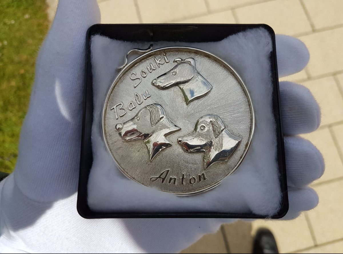 Das Motiv des Königsordens umfasst eine Grafik der Familienhunde. Souki, Balu und Anton befinden sich mit Bild auf der Rückseite. „Treue Freunde“ ist das Motto des Königspaares Sigrid und Hans-Jürgen Kraus.