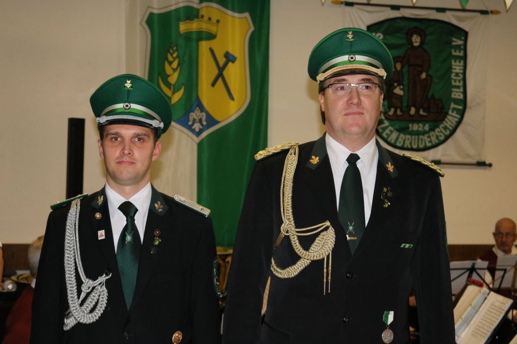 Beim Vereinsmeisterschießen auf dem neuen Schießstand des Nachbarvereins Pernze-Wiedenest siegte Michael Bock mit 192 Ringen. Die Schießmeister Joachim Tomasetti und Reinhold Dickhaus zeichneten ihn dafür mit dem Vereinsmeisterorden aus. Zwei Offiziere befördertZwei Offiziere wurden nach langjähriger Offizierstätigkeit befördert. Seit 1993 gehört Torsten Clemens dem Offizierscorps an. Brudermeister Thomas Bock beförderte ihn zum Oberst. Jens Müller, seit 2009 Offizier, wurde zum Oberleutnant befördert. Aus beruflichen Gründen konnte Marco Langenohl nicht zum Fest kommen. Er ist seit 2001 Offizier und wird zu einem späteren Zeitpunkt in einem gebührenden Rahmen zum Hauptmann befördert.