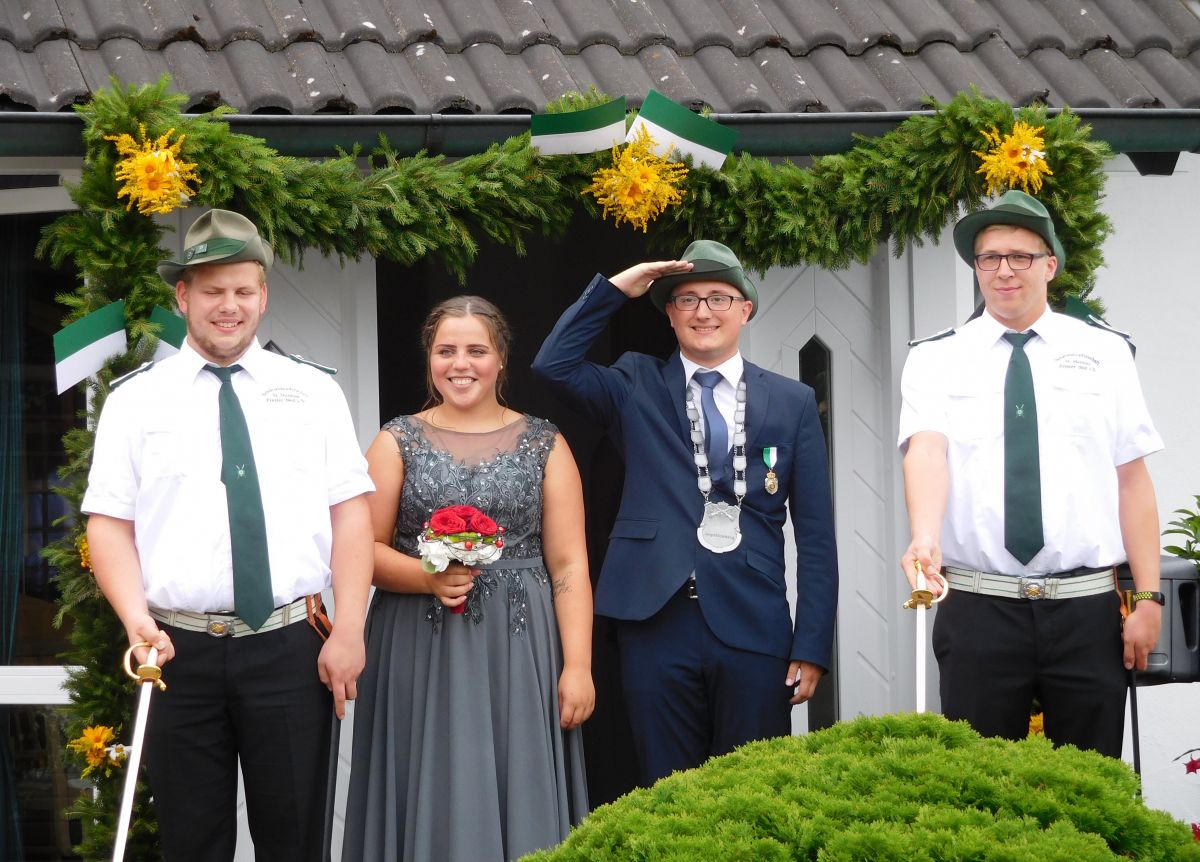 Am Sonntag, 28. Juli, heißt es um 14.30 Uhr Antreten aller Schützenbrüder in der Schützenhalle mit geschmücktem Gewehr und gemeinsamer Gang zur Einholung der Fahnen, Abholung des Königs- und Jungschützenkönigspaares und Festzug mit Kranzniederlegung am Ehrenmal.