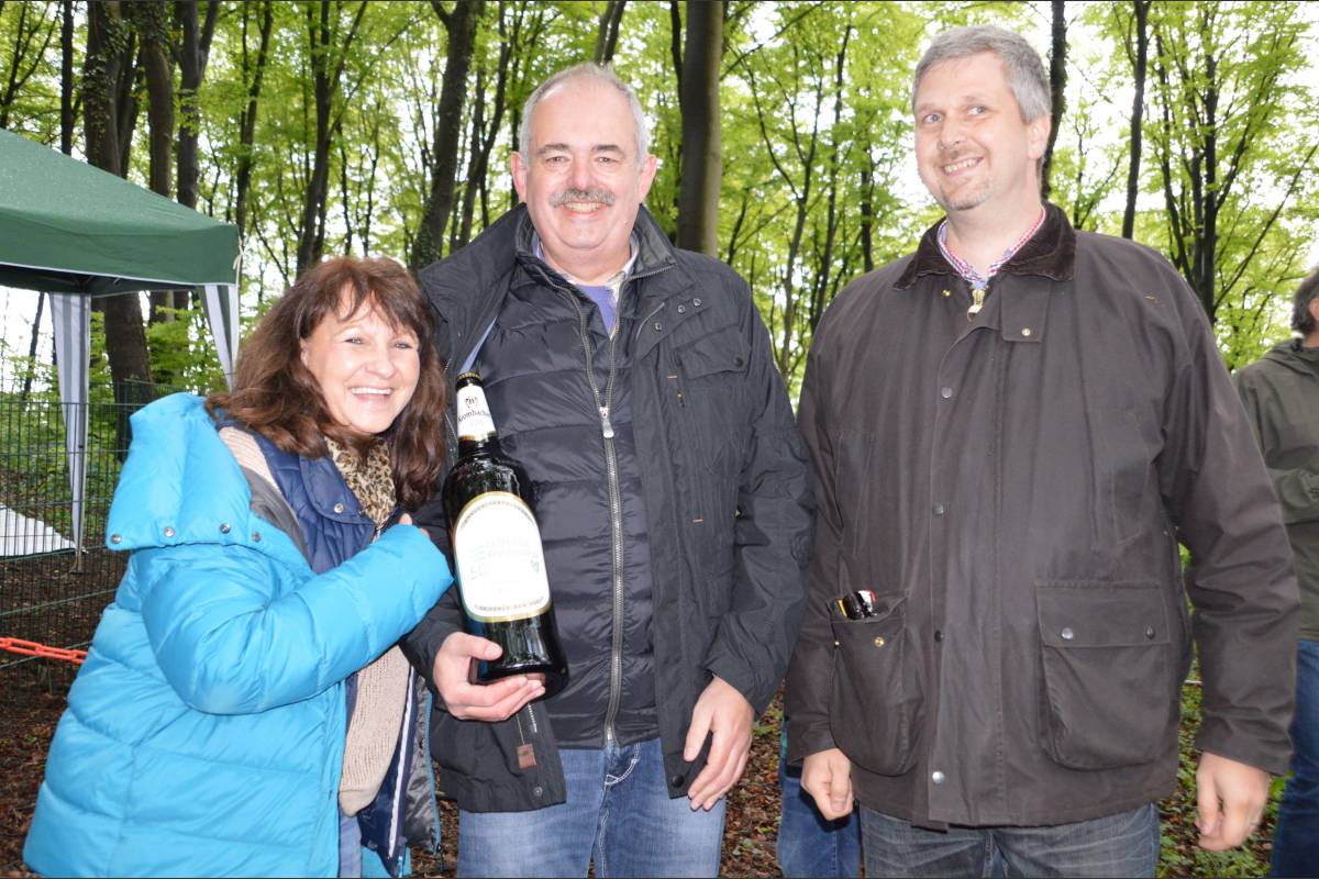 Gefeiert wurde im Anschluss wieder in der Schützenhalle, die nach einer kleinen Wanderung erreicht wurde. „Insignien der Macht bekommt der neue König nicht“, so Gregor Flamme. Dafür gab es eine Drei-Liter-Krombacher-Bierflasche. Alle anderen Teilnehmer bekamen aus dieser Sonderkollektion eine Ein-Liter-Flasche mit dem Aufdruck des Jubiläumsjahres der Gemeinde.