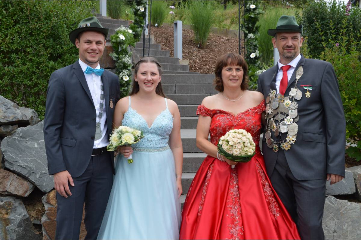 Zusammen mit dem noch amtierenden Königspaar Volker Bockheim und Vera Wilmesmeier-Bockheim, sowie dem amtierende Kaiserpaar Dr. Wolfgang und Dorothe Neuhäuser zeigte sich das Jungschützenkönigspaar am Sontag im großen Festzug. Am Montag, 29. Juli, geht es um 8.30 Uhr weiter mit dem Antreten und dem Abmarsch zur Vogelstange um das neue Königspaar zu ermitteln.