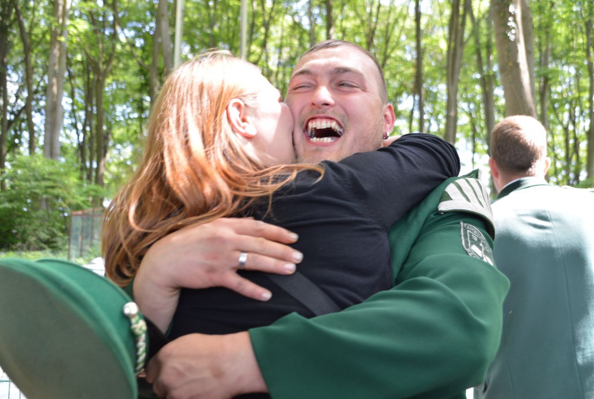 Eine halbe Stunde später geht es zum Abholen der Vereinsfahne und des Königspaares sowie zur Kranzniederlegung am Ehrenmal. Erster Höhepunkt ist der große Festzug