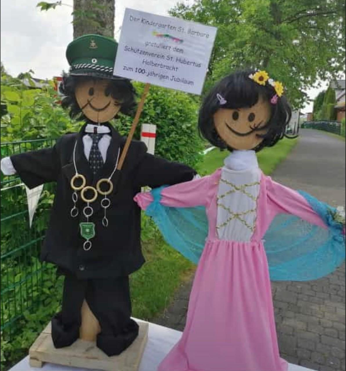 Für Blickfänge sorgten bereits vor dem Hochfest Offizierspuppen, Bergleute und Jubiläumsbanner an den Ortseingängen, am Ehrenmal und an der Schützenhalle - in liebevoller Detailarbeit vom ehemaligen, langjährigen Adjudanten Guido Schulte gefertigt. Wermutstropen dabei: Leider wurde ein Offizier bereits nach nicht einmal zwölf Stunden am Ehrenmal entwendet.