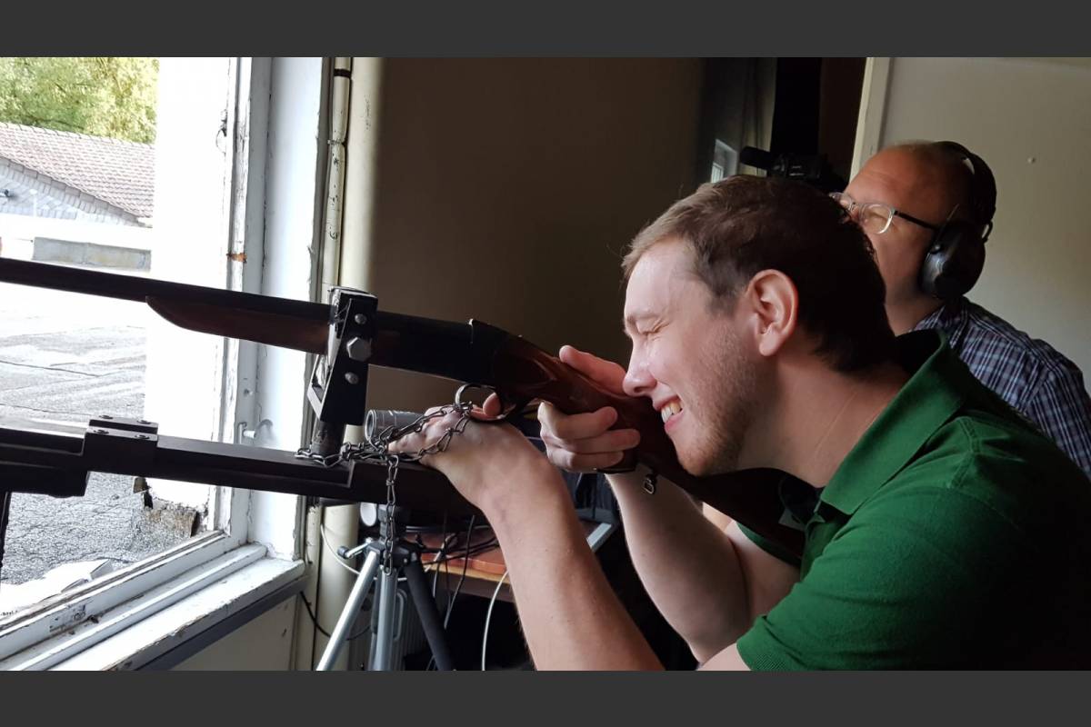 Schon zuvor hatte Göckeler mit seiner Treffsicherheit für Spannung gesorgt: So fegte er nach einem Schuss den Vogel fast komplett von der Stange, nur noch ein winziger Span blieb hängen.