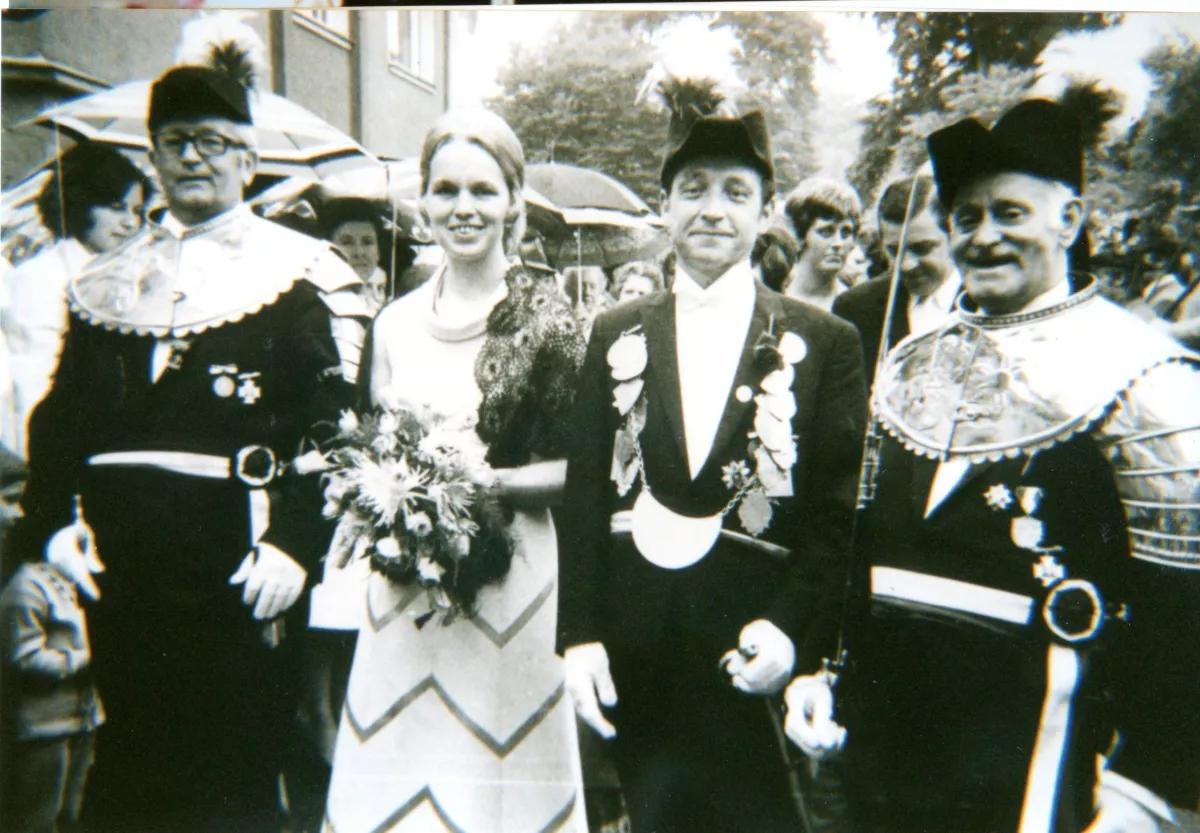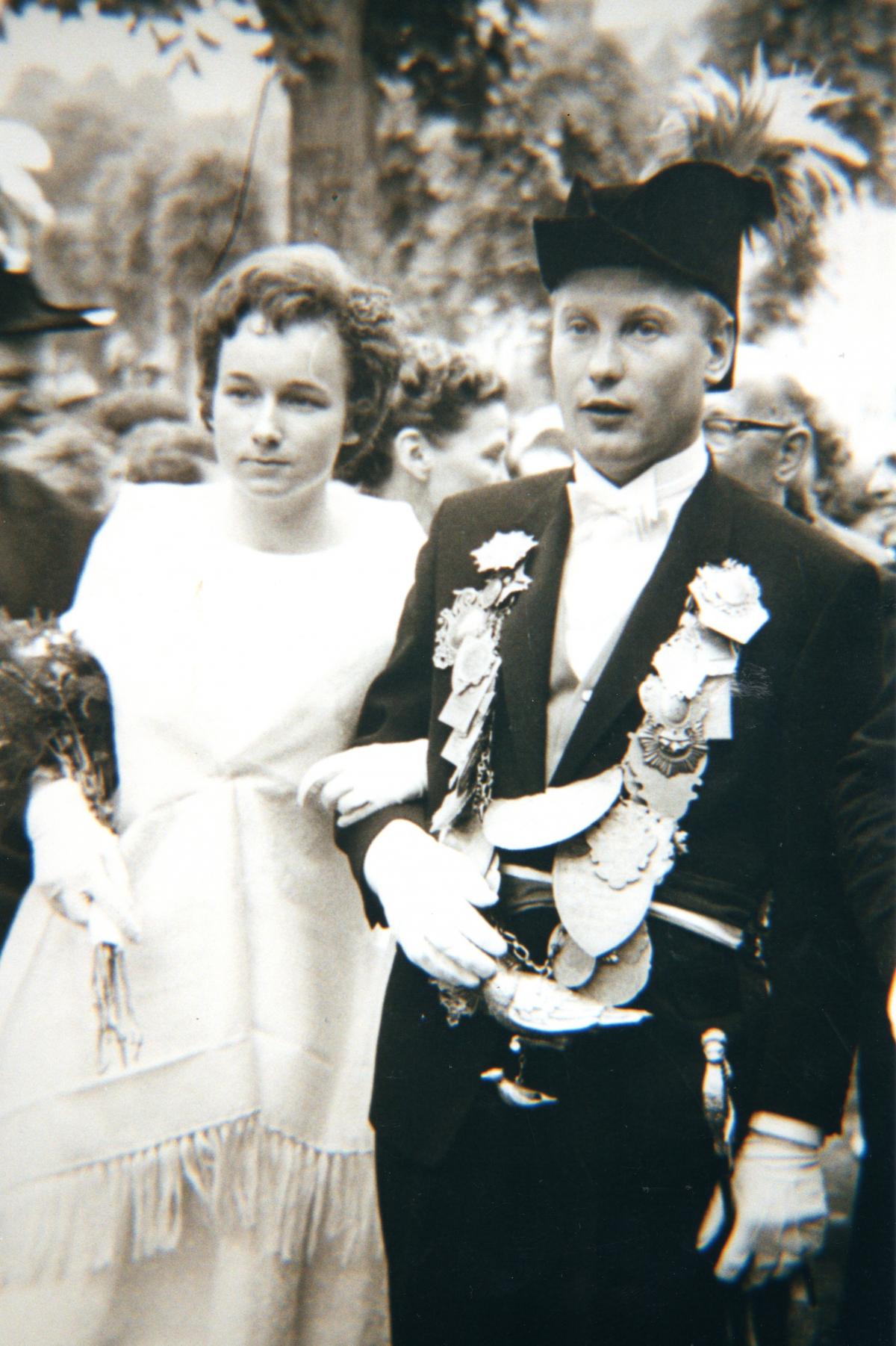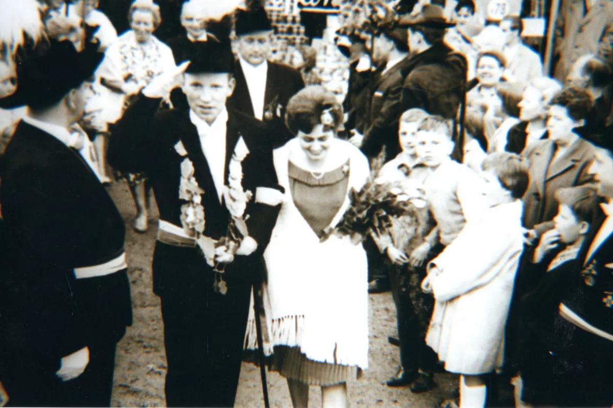 Das Schützenfestwetter war an diesem Wochenende wenig hanseatisch und passte eigentlich eher zum Olper Schützenfest, denn es ließ sich an keinem Tag die Sonne sehen. Das hinderte Schützenbruder Günter Brosk aber nicht daran, Scheibenkönig in Attendorn zu werden. Mit Günter Brosk regierte 1962 Bärbel Ahrens.