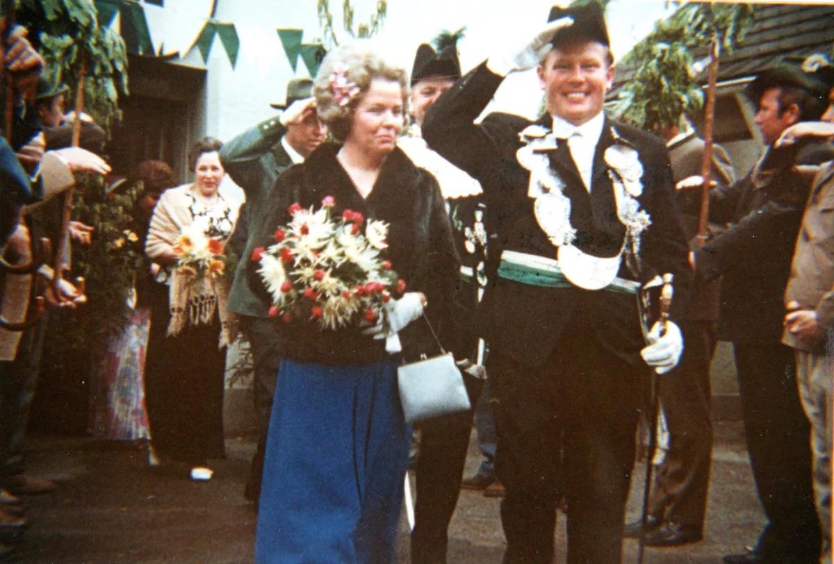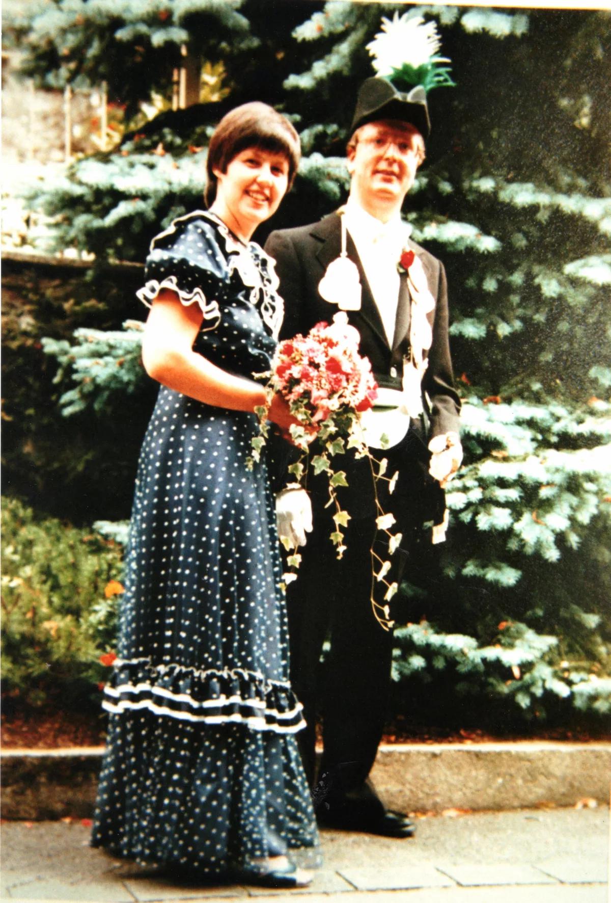 Aller guten Dinge sind drei! Das dachte sich auch Hans-Josef Schnatz und wurde als Scheibenkönig im Jahr 1982 die dritte Majestät in der Straße „Am Himmelsberg“. Spontan wurde der Straßenname damals von den Anwohnern in „Königsallee“ umbenannt. Danach hatte es zunächst aber gar nicht ausgesehen. Hatte doch seine spätere Königin Doris den Wecker verstellt, um das Schlimmste zu verhindern. Dennoch genossen beide anschließend ihre Zeit als Scheibenkönigspaar.