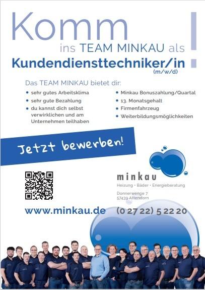 Minkau investiert bereits seit Jahrzehnten in die Ausbildung geeigneter Mitarbeiter, um so dem gravierenden Fachkräftemangel entgegenzuwirken. Ein großer Teil des Teams besteht bereits heute aus eigenen ausgebildeten Monteuren. Von den aktuell neun technischen Mitarbeitern haben sechs die Ausbildung bei Minkau erfolgreich absolviert.