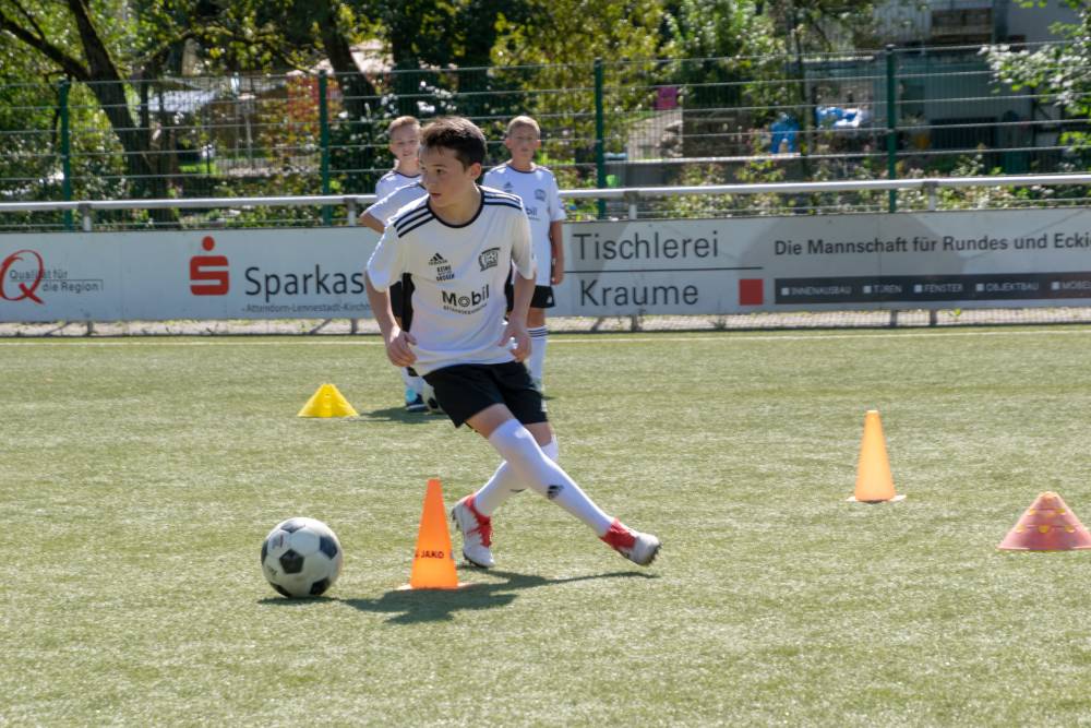Hier kam auch eine Neuheit der Fußballschule erstmals zum Einsatz. Das Gerät verfügt laut B-Lizenz-Trainer Andreas Lichtner über ein spezielles Lichtschrankensystem, mit dem individuelle Trainings ermöglicht werden. „Gerade in Sachen Koordination, Spielübersicht und Reaktionsschnelligkeit sollen die Kinder an dieser Station geschult werden“, so Lichtner. Drei Tage, vier TrainingseinheitenZu Beginn erhielten alle Teilnehmer einen Trikotsatz der Fußballschule sowie eine Tasche mit einer Brotdose und Flasche. Am Freitag stand eine zweistündige Trainingseinheit auf dem Programm, am Samstag hatte der Nachwuchs gleich zwei zweistündige Einheiten und am Sonntag nochmal eine zu absolvieren. Abschließend standen eine „Mini WM“ und die Siegerehrung auf dem Programm. Hier erhielten alle Kinder einen kleinen Pokal sowie eine Urkunde.
