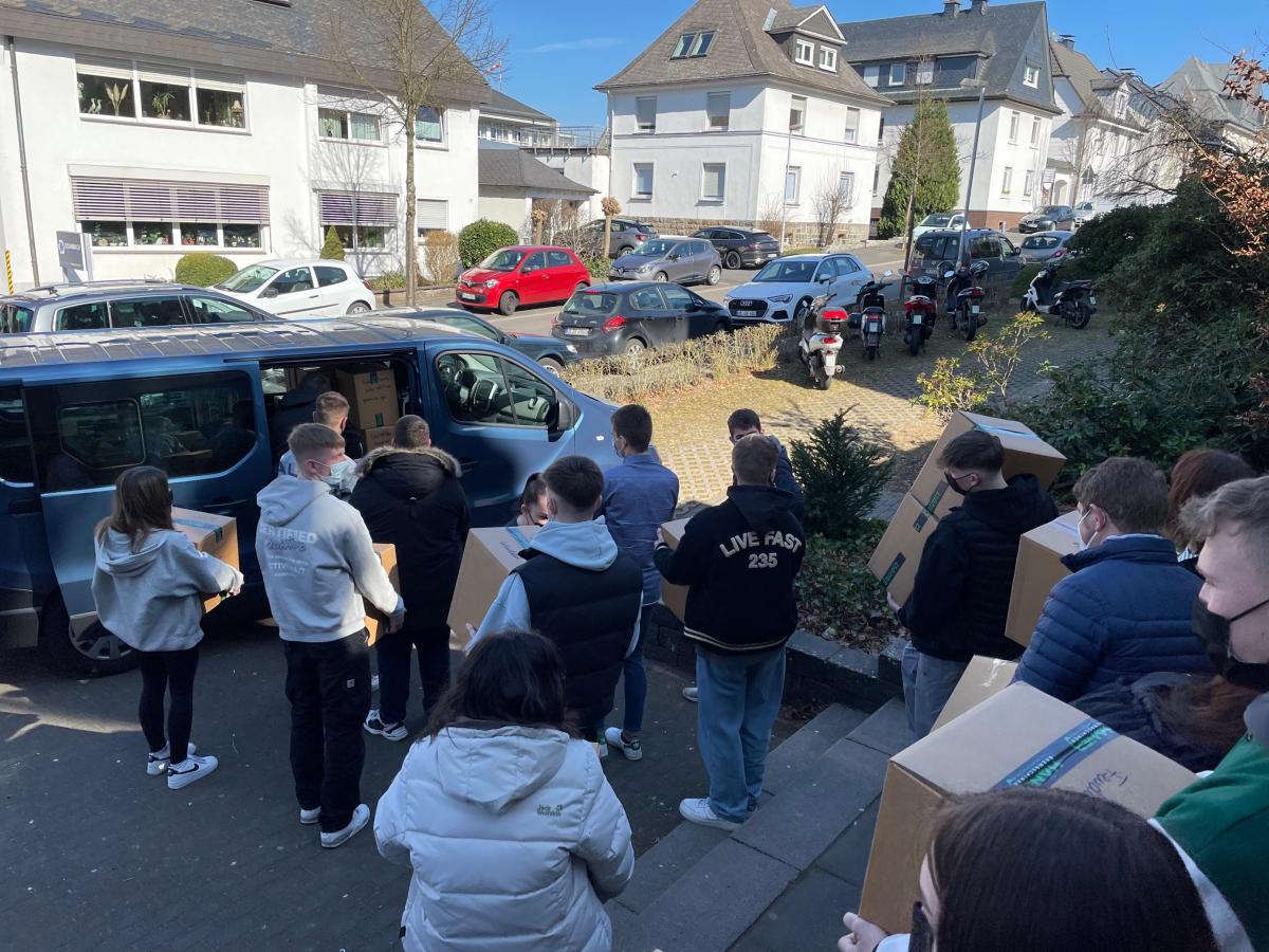 Im Rahmen des Aktionstages sammelten die Schüler zunächst Sachspenden für die Menschen in der Ukraine. Sie freuten sich riesig darüber, dass insgesamt 100 Kartons gefüllt werden konnten.