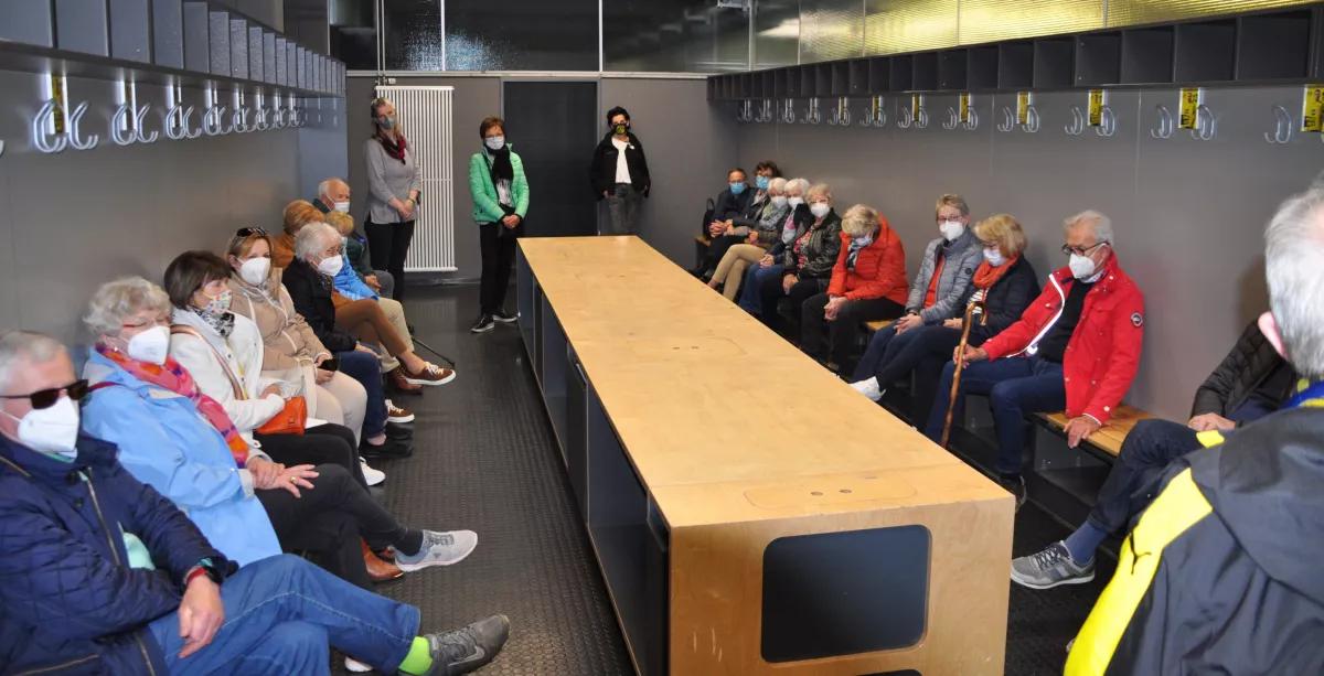Beim Rundgang durften die Attendorner zwar den „heiligen Rasen“ nicht betreten, konnten aber auf der Spieler- und Trainerbank Platz nehmen und sich sogar in der Kabine von Borussia Dönekes über ehemalige Dortmunder Spieler anhören.