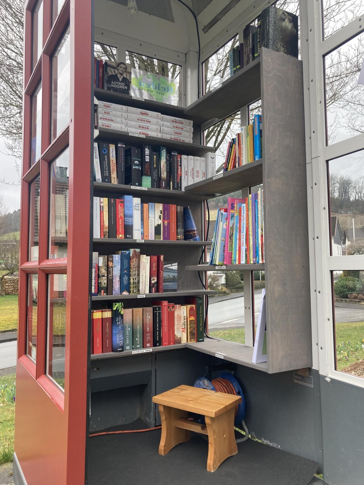 Dank finanzieller Unterstützung durch ein Förderprogramm der Hansestadt Attendorn konnte eine ausgediente Telefonzelle in Norddeutschland gefunden und erworben werden. In den vergangenen Wochen wurde diese vom Dorfverein mit fachmännischer Hilfe von Michael Koch und Hubertus Gabriel renoviert und in eine schmucke „Bücherzelle“ umgewandelt.