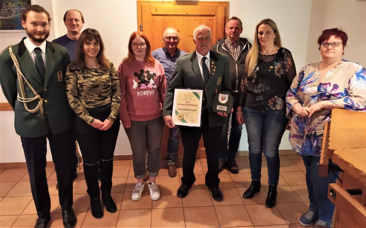 Von den Vereinskameraden wurde Hermann Josef Plaßmann zum Ehrentambourmajor ernannt und erhielt sowohl die goldene Dirigentennadel mit Diamant als auch die Landesehrenplakette des Volksmusikerbundes NRW. Zudem überreichte der Vorstand weitere Präsente als kleines Dankeschön.