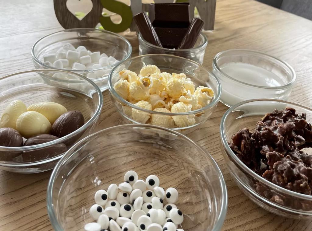 Zunächst müssen die Muffins mit einer Glasur ( z.B Puderzucker und Wasser) bestrichen werden. Anschließend wird der Kopf des Schafes gestaltet. Dafür nehmt ihr ein Schoko-Ei und teilt dieses in der Mitte. Dann werden, ebenfalls mit Glasur, zwei Zuckeraugen auf das Ei geklebt. Zum Schluss noch Popcorn, Mini Marshmallows oder Choco-Crossies als Schafwolle auf den Muffin kleben und fertig sind eure Muffins.