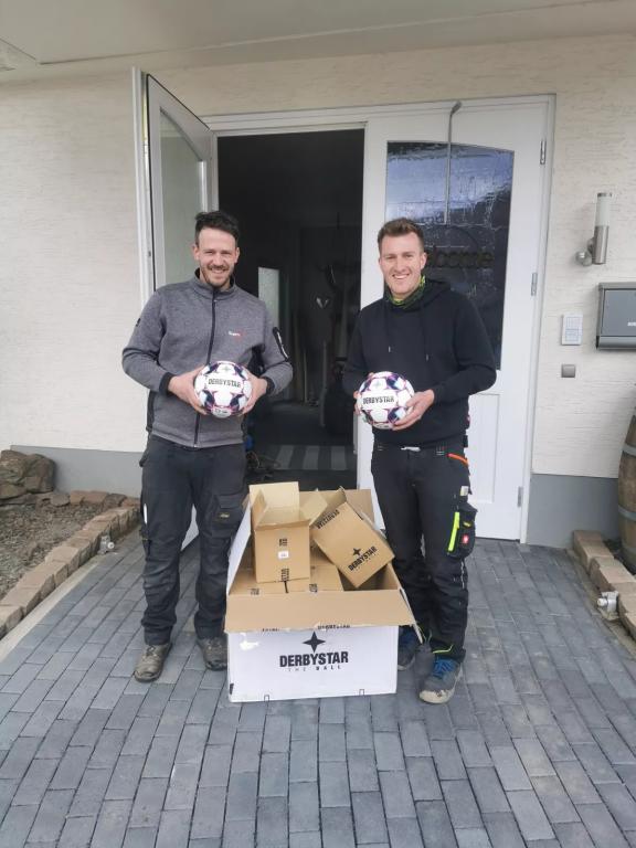 Dank des Vereins-Ausstatters konnte die Summe noch verdoppelt werden und verschiedene Materialien wie Bälle, Leibchen und Co. für den Trainingsbetrieb an den Jugendleiter des Vereins, Marco Kriechel übergeben werden. Weiter gab der Verein einige Tonnen Baumaterialien im Baustoffzelt in Dernau ab.