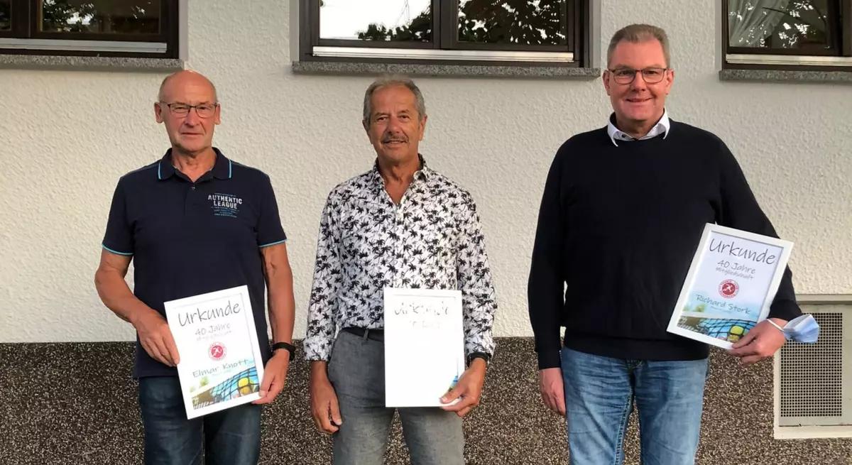 Neben den Wahlen standen als Highlight die Ehrungen an. Der Verein wurde 1980 gegründet und seit diesem Zeitpunkt gehören sieben Mitglieder dem Verein an, die ihm auch noch heute die Treue halten. Das sind Peter Gerold, Gerald Henrich, Elmar Knott, Dieter Stork, Richard Stork sowie Bernd Udo Werner und Udo Zimmermann. Des weiteren wurde Frank Stork für seine 25-jährige Vereinszugehörigkeit geehrt.